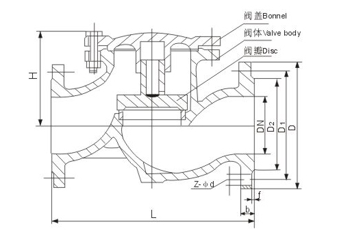 H41W/H Stainless Steel Lift Check Valve main dimensions