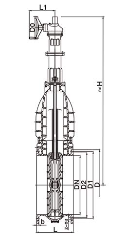 四、MZ48W煤氣閘閥主要外形及連接尺寸