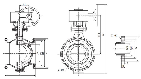 Q94F/Y/H電動偏心半球閥主要外形和連接尺寸: